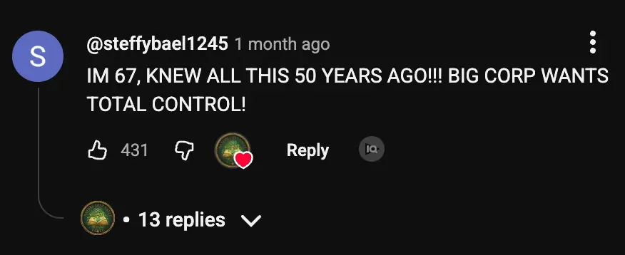 This audience is primarily focused on theories about governments, major corporations, and similar entities seeking to control them in farming. This is valuable information, because you can use this to trigger your audience.