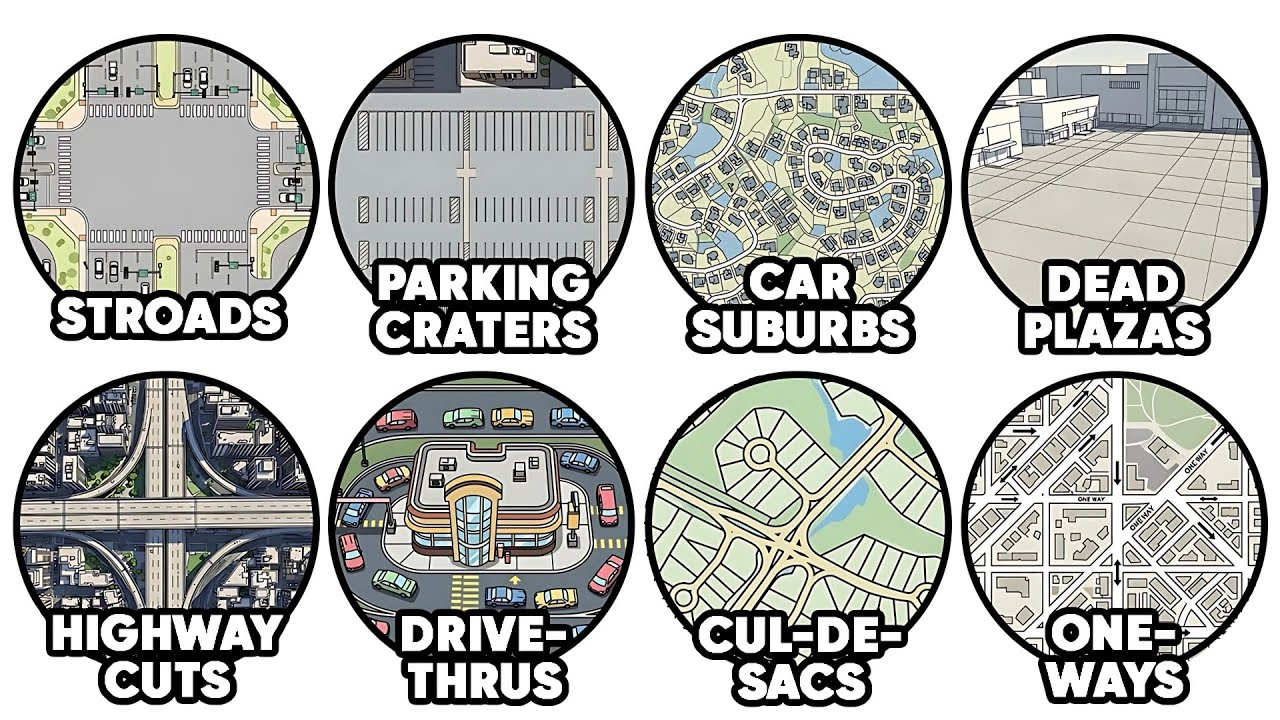 'Stroads... Your daily commute is making you miserable, and it's not by accident.'