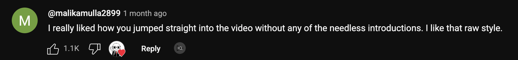 This is such a good intro because it gives the viewer exactly what they clicked for, and right away you get the feeling that the script or the narrator is someone with a real personal opinion because of the last sentence: “and it's not by accident.” The fact that these are the very first seconds of the video is probably a big factor in why this video has already reached more than 240k views. Really strong start!